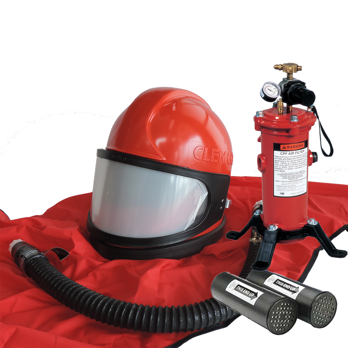 Questa unità è in grado di fornire aria filtrata all’utilizzatore del casco alimentato durante tutto il lavoro di sabbiatura.